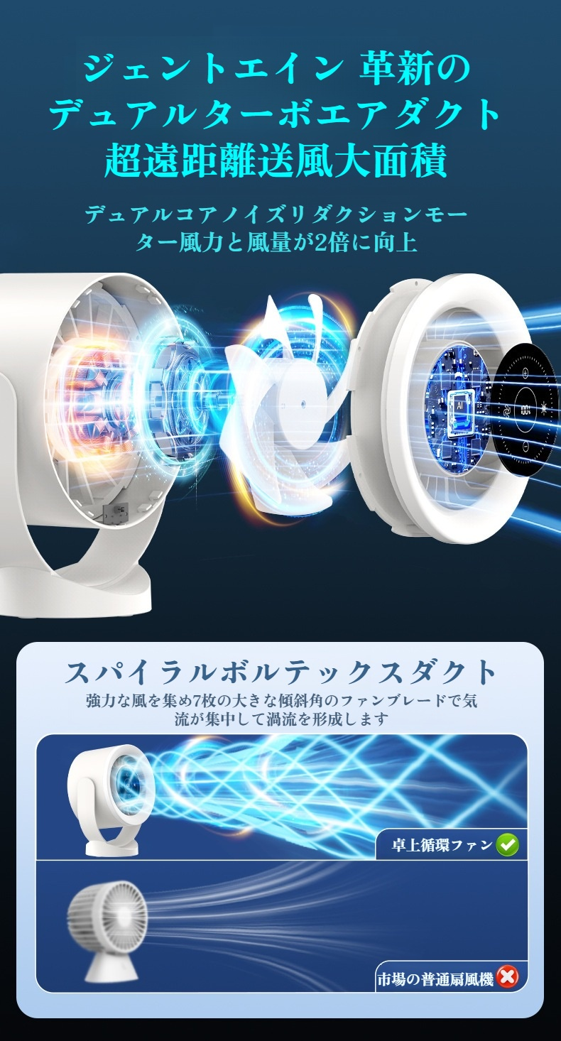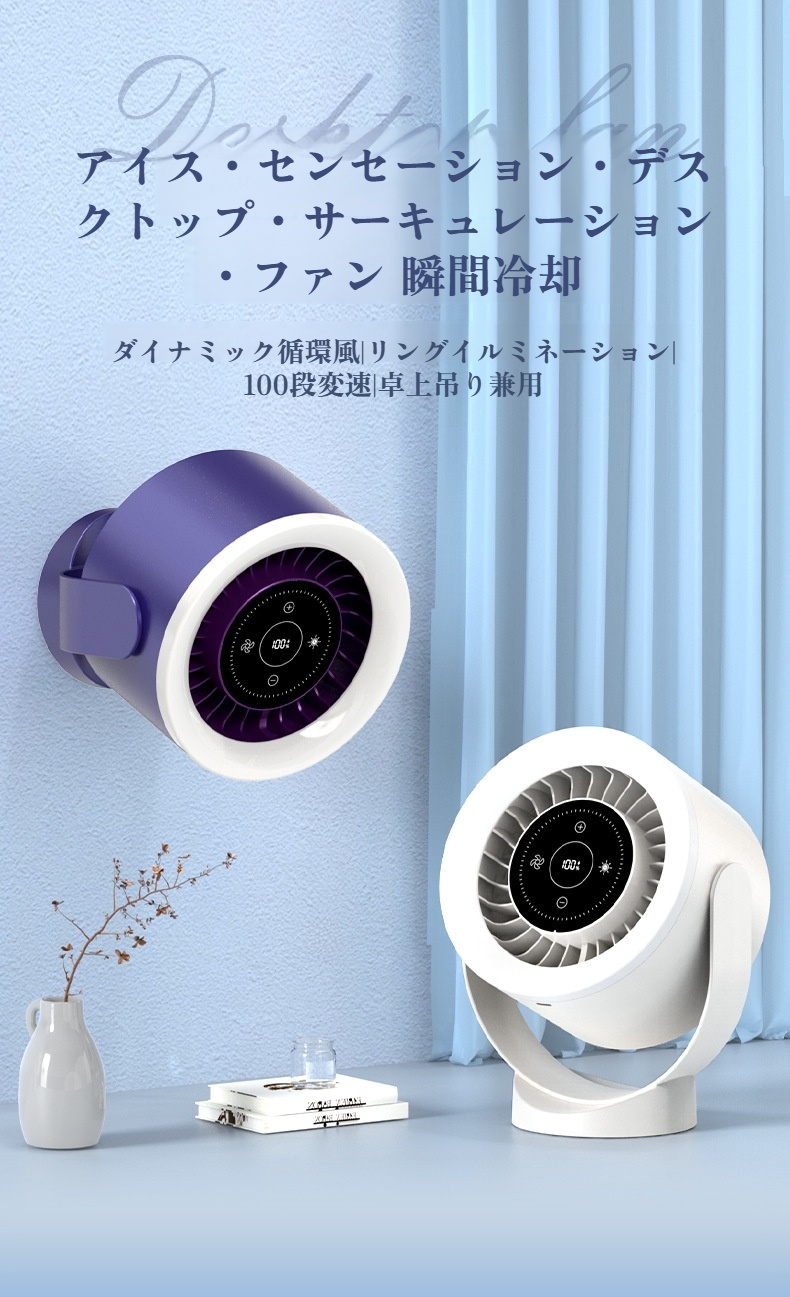 2025新しいデスクトップ壁掛けデスクトップタービン循環ファンファンライト充電式デスクトップファンベッドサイドランプタッチデジタルディスプレイリング照明